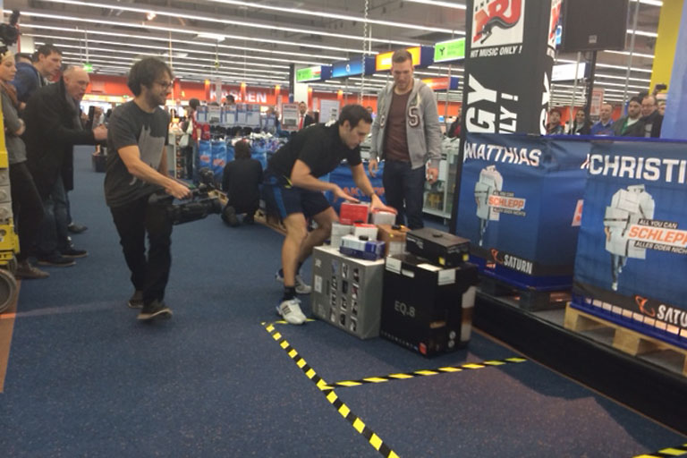 Heute fand in Ingolstadt der Saturn-Wettbewerb „All you can schlepp“ statt – Der Sieger gewann Waren im Wert von 44 513 Euro, die Verliererin holte sich eine gebrochene Nase