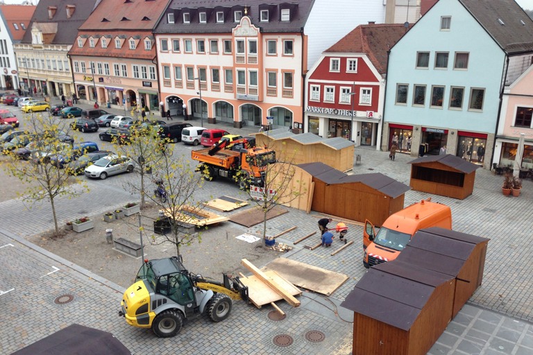 Noch sind erst eher triste Bretterbuden zu sehen, doch bald werden sie auch ordentlich herausgeputzt - der Pfaffenhofener Christkindlmarkt mit einem reichhaltigen Rahmenprogramm nimmt langsam Gestalt an