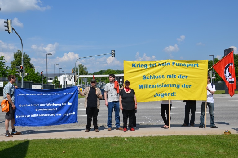 20 Leute wenden sich gegen Sport- und Info-Veranstaltung in der Kaserne an der Manchinger Straße: "Schluss mit der Militarisierung der Jugend"