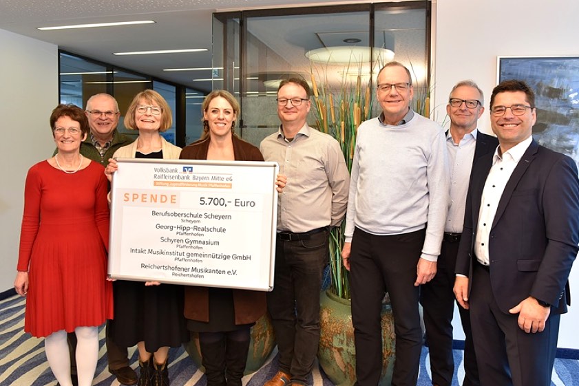 Stiftung der Volksbank-Raiffeisenbank Bayern-Mitte fördert wieder Projekte und Aktionen: Geld für Georg-Hipp-Realschule, Schyren-Gymnasium, FOS/BOS, "Intakt"-Musikinstitut und Reichertshofener Musikanten.